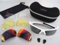 Как правило, это сменные линзы, одна из которых прозрачная, одна жёлтая "просветлённая" (хороша в пасмурные дни) и одна тёмная (для защиты от яркого солнца). Бывает антифог в комплекте, бывают трое очков с разными линзами в жёстком кейсе, чехлы на закрытые очки и тому подобное. Свобода выбора на рынке в данный момент колоссальная.